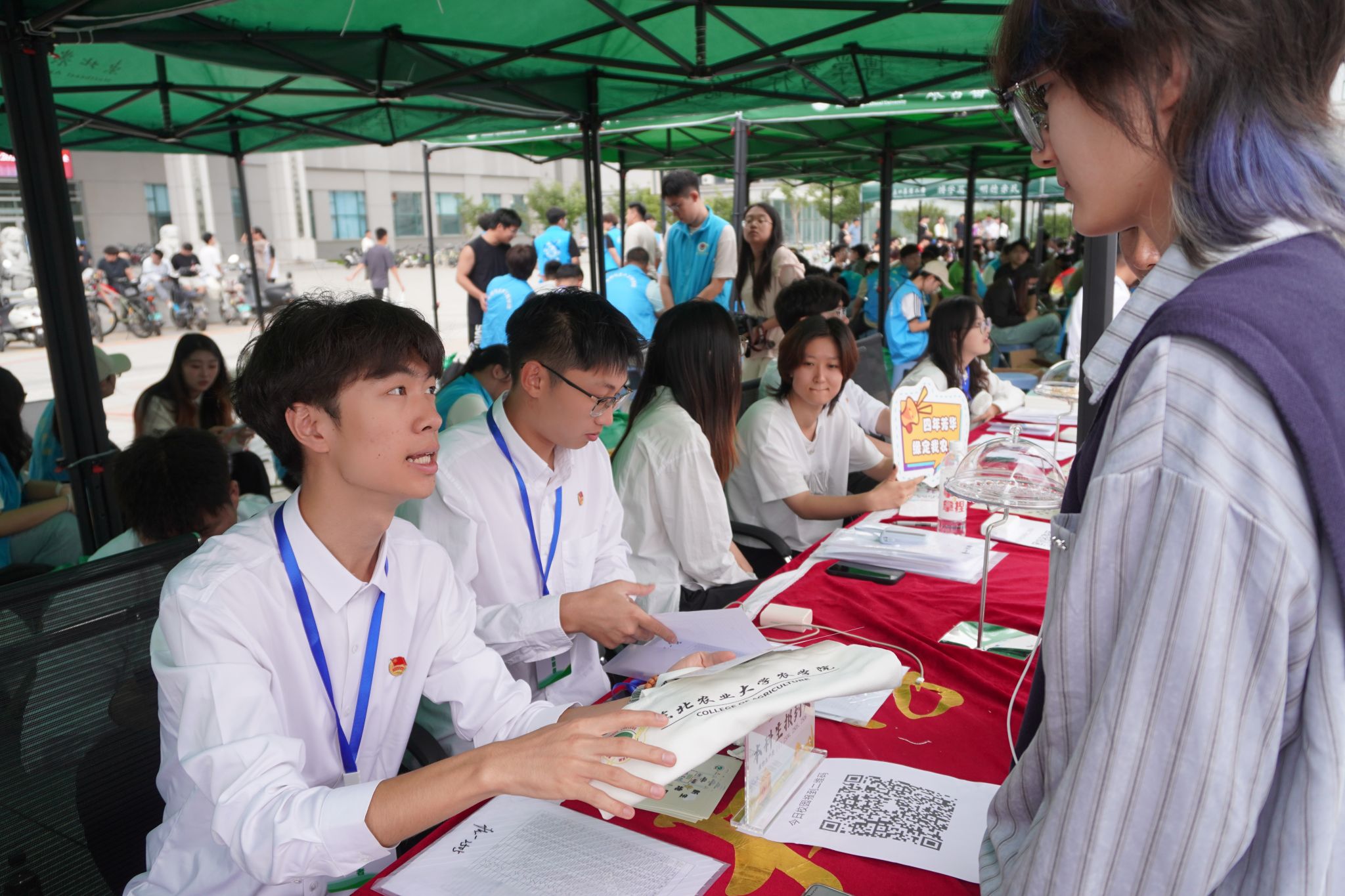 新生踏入校园的那一刻,就有志愿者上前热情引导至登记处,在辅导员老师和班助的引导下,新生们有条不紊地完成入学登记工作,完成信息确认后,新生们会收到农学院专属的“成长礼”。