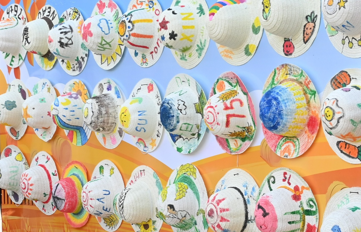 草帽彩绘:现场提供草帽及全套绘画工具,同学们充分发挥创意,将个人风格与农业元素巧妙结合——或以稻田、麦穗为笔,细细勾勒出静谧悠远的田园风光,或借生动的卡通形象,俏皮展现农科生活的独特趣味,亦将浓浓的乡愁融入家乡的农耕场景,于草帽之上传递出对故土的深深思念。原本朴素的草帽,在笔下变成了独一无二的“农业主题艺术品”,尽显动手能力与创新巧思。