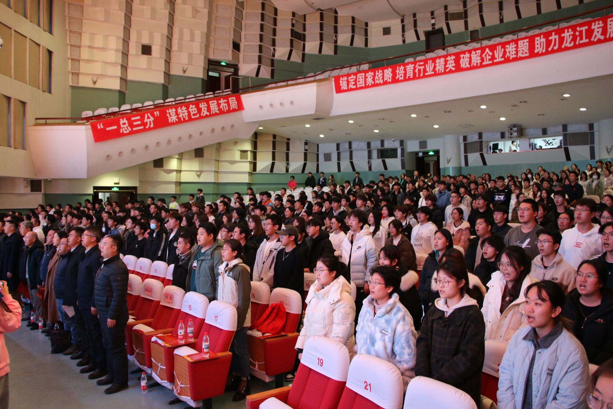 为深入学习领会习近平总书记给中国农业大学全体师生的回信精神,传承农学优良传统,激励学院师生投身农业强国建设。11月6日,农学院举办“学习回信精神 弘扬农学传统 矢志强农报国”主题教育大会。学生工作部(学生处、武装部)部长汪志君,校团委书记吕嘉昌,招生就业处副处长吴立龙,东北农业大学老科协会长、原农学院党委书记王成贵先生,哈尔滨市老科协农业专家组组长、原农学院院长魏湜教授,黑龙江北大荒农业股份有限公司农业发展部主管李晓辉,农学院领导班子、各系党支部书记、系主任、全体辅导员、新入职教师、学生代表共计500余人一同参会。