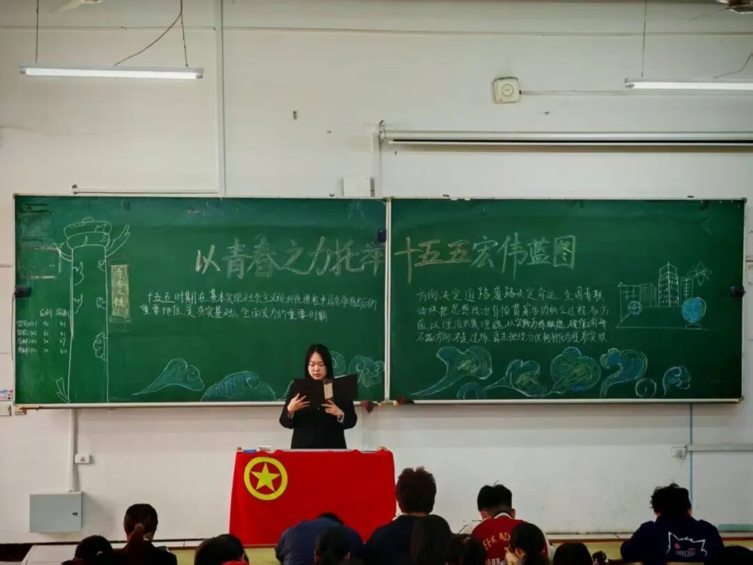 几位同学代表围绕“以青春之力托举‘十五五’宏伟蓝图”的团日活动主题,剖析规划纲要草案的新指标、新看点,对比“十四五”规划中的相关内容,明确国家未来发展的目标任务,让同学们深入理解国家规划的延续性与创新性。
