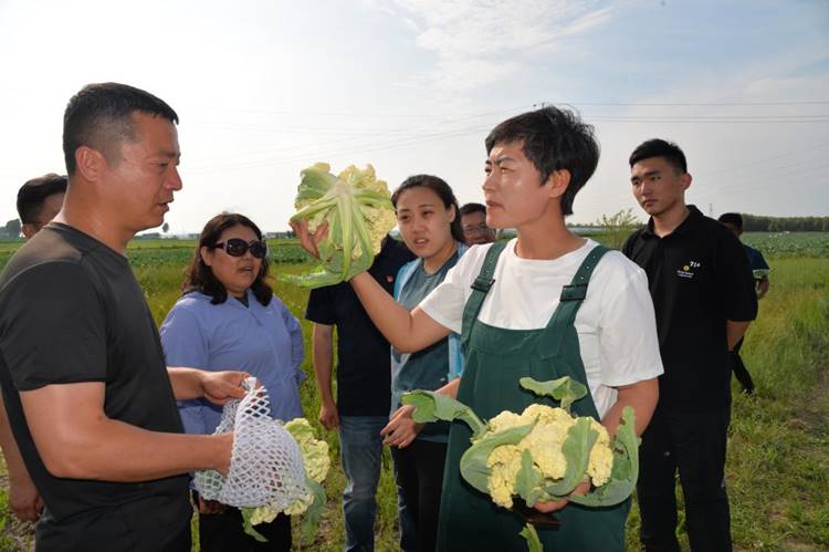 随后,实践团一行前往天利果蔬交易大市场和有机菜花基地实地参观,这里是八井子乡最大的果蔬产业合作社。今年,八井子乡9000多栋冷棚香瓜预计产量超过4500万斤,带动农民收益超亿元,棚室香瓜已经成为八井子乡棚室种植户增收致富的头牌产业。有机菜花基地的建设帮助种植户增加收益的同时辐射带动了贫困户以土地、资金、劳动力入股形式获得分红,实现增收脱贫。