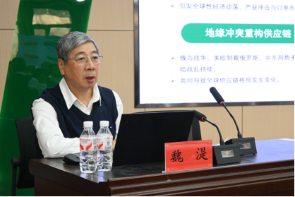 党的二十届四中全会审议通过“十五五”规划建议,将粮食安全纳入国家安全能力建设,与科技创新、人才培养同列战略任务。魏湜教授围绕世界百年未有之大变局加速演进、国际力量对比深刻调整的复杂环境,从农业面临的新机遇与新挑战、未来“三农”发展目标与改革重点、世界粮食生产及贸易格局、中国粮食生产与进出口贸易情况、我省农业发展形势及目标等方面,系统分析了当今世界格局下中国农业的发展形势与粮食安全战略应对策略。他指出,广大农业科研工作者在推进农业强国与中国式现代化建设的征程中,必须担负起农业科技原始创新和关键核心技术攻关的重任,着力加快高水平农业科技自立自强,推动农业实现高质量发展。