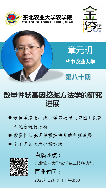 主要从事数量性状基因挖掘方法学研究与软件研制。建立和发展了关联分析的混合模型及其mrMLM和3VmrMLM方法;提出了QTL作图的GCIM和F2群体BSA的dQTG-seq方法;系统拓展主基因+多基因混合遗传分析方法;探索了作物基因组变异与特有性状形成的分子机制。获教育部自然科学二等奖1项。主持科研项目近30项。在Mol Plant等刊物发表学术论文170余篇,其中IF大于9.0的通讯作者SCI论文11篇。担任Heredity等杂志副主编,BMC Genomics和作物学报等杂志编委。《生物统计与田间试验》国家精品课程主要负责人;主编的《生物统计学》获2020年度全国高等农业教育优秀教材奖。