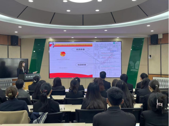 学生党建办公室组织部部长丁思怡同学详细解读了发展党员的工作细则,从发展党员程序、党员材料书写规范、发展党员过程中易出现的问题等方面进行细致的讲解。