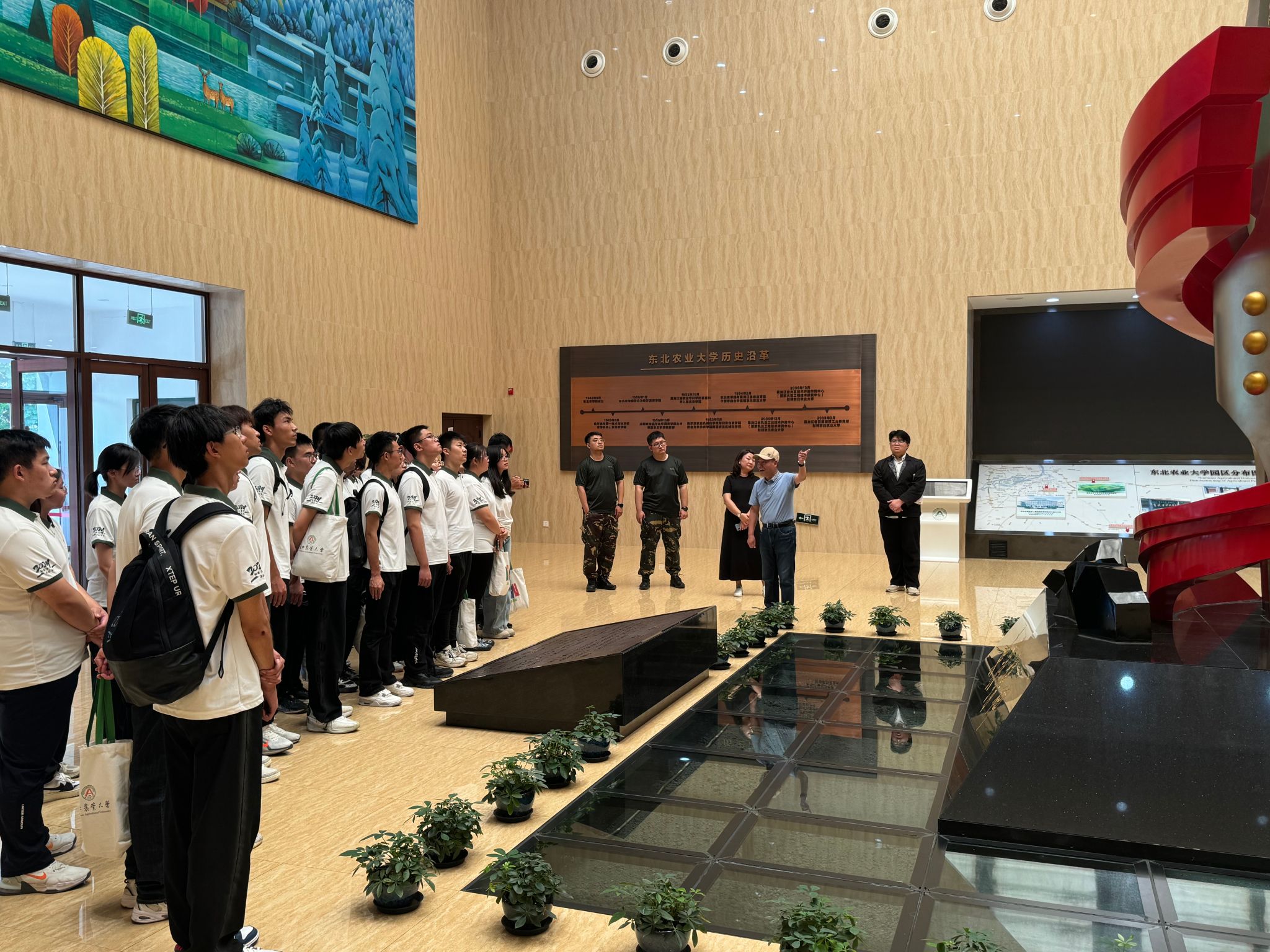 校史馆内的每一张照片、每一件展品都诉说着学校的过往岁月,记录着一代又一代师生的奋斗足迹。王成贵先生作为校史的亲历者和见证者,生动地为新生们讲述学校的发展史,帮助新生们深入了解了学校的悠久历史和文化底蕴。回望东农七十六载筚路蓝缕,2024级新生们深刻体会到何为“艰苦奋斗,自强不息”的东农精神,何为“博学笃行,明德亲民”的东农校训。