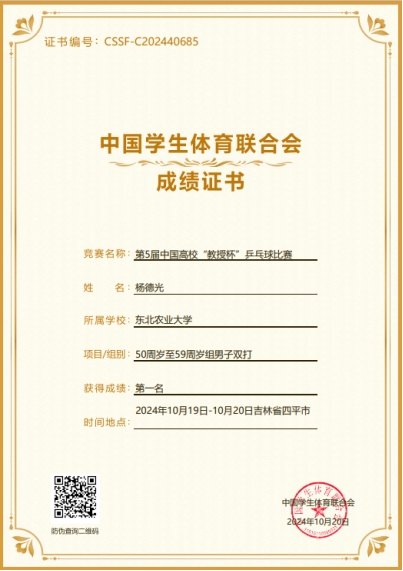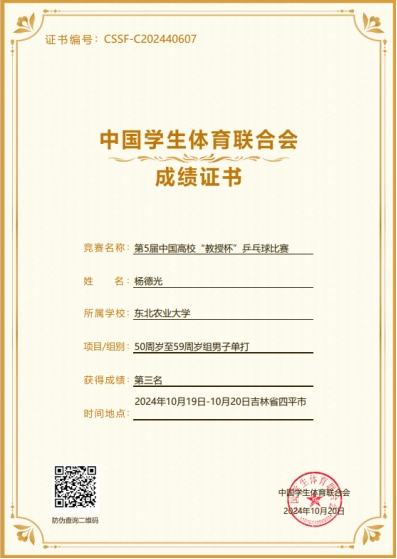 2024年10月19日至20日,第五届中国高校“教授杯”乒乓球比赛在吉林四平举行。经过2天的激烈角逐,英国威廉希尔公司官网杨德光老师取得优异成绩,获50周岁至59周岁组男子双打第一名、男子单打第三名。展示了英国威廉希尔公司官网教师良好的精神风貌和积极拼搏的体育精神,也加强了和其他高校之间的交流。
