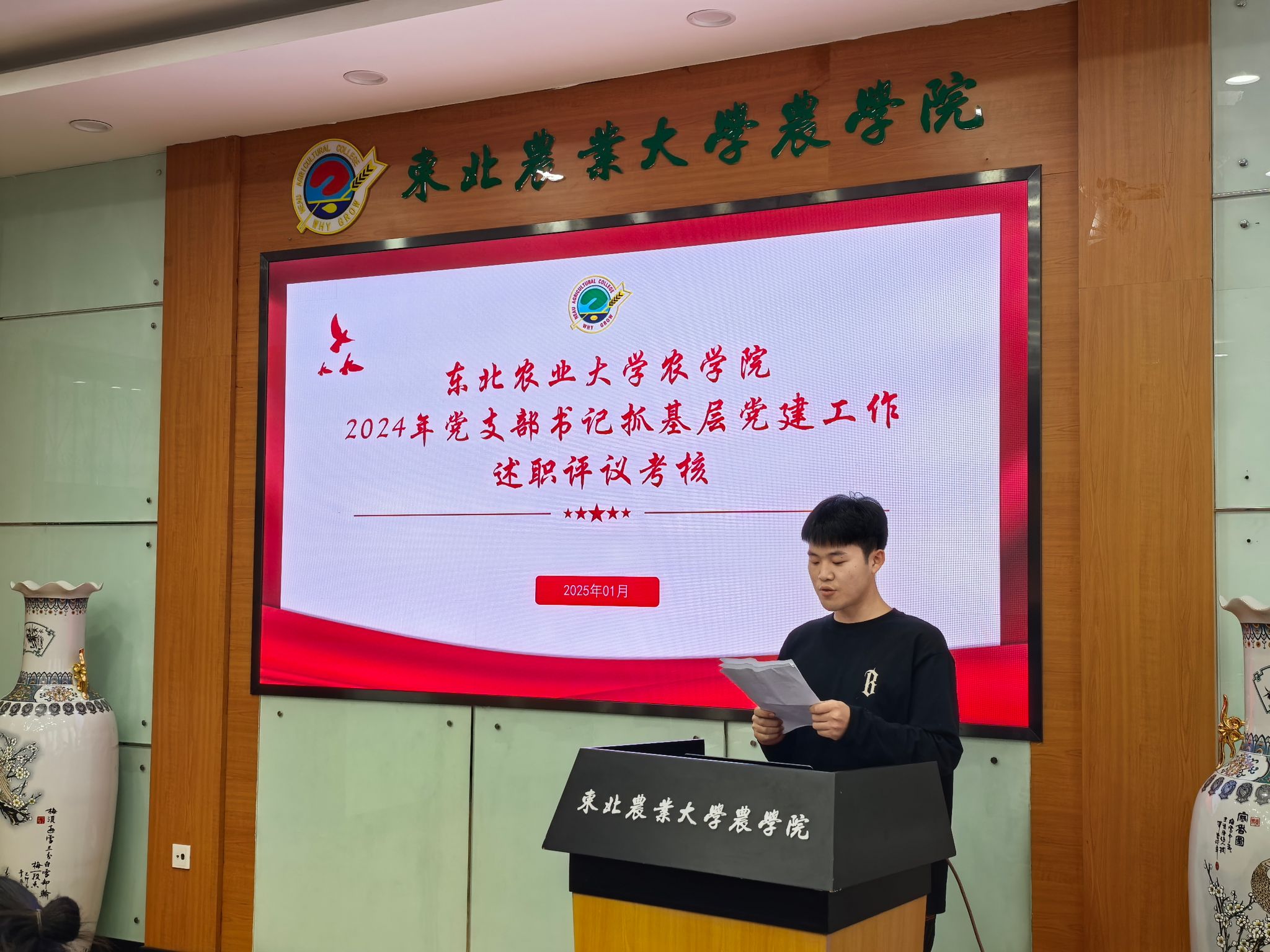 按照学校《东北农业大学2024年度党组织书记抓基层党建工作述职评议考核》要求,1月3日上午,农学院党委组织召开2024年度基层党支部书记述职评议考核会议。学院党委委员、各党支部书记出席,会议由农学院正处级辅导员张华英主持。