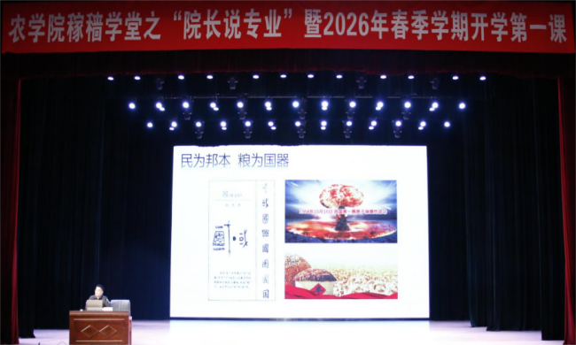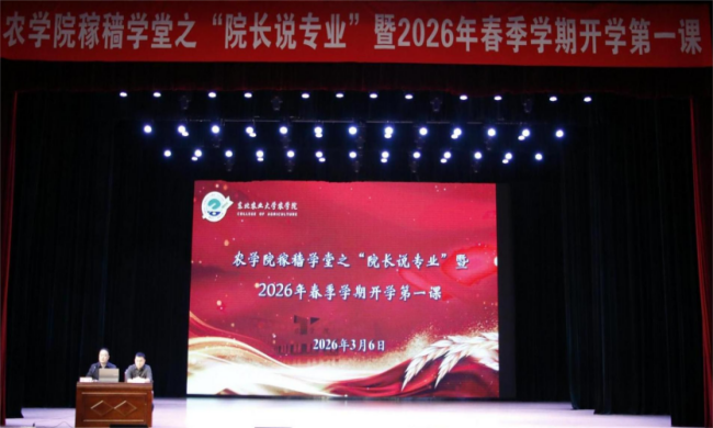3月6日,农学院在音乐厅剧场举办稼穑学堂之“院长说专业”暨2026年春季学期开学第一课活动。学院院长辛大伟以“新质生产力背景下的农学专业创新人才职业规划与发展”为题作专题报告,学院党委副书记马涛主持活动,学院全体辅导员及学生代表共同参会。