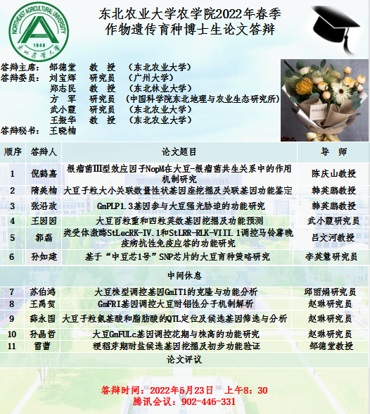 农学院2022年春季作物遗传育种博士论文答辩